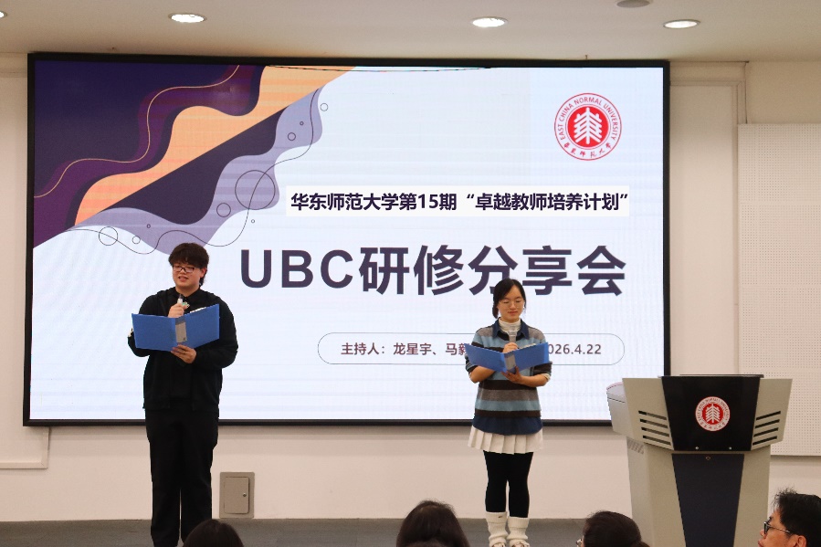 4月22日下午,华东师范大学“卓越教师培养计划”师范生赴加拿大英属哥伦比亚大学(UBC)研修项目分享会在闵行校区一教110举行。学校相关部门、师范生培养单位师生代表齐聚现场,聆听我校师范生海外研学的收获与成长感悟。